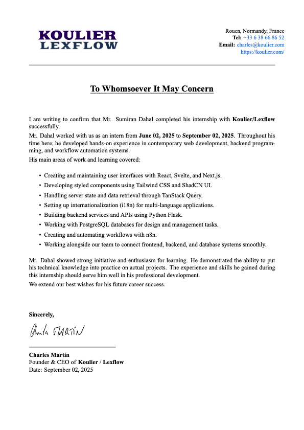 I'm a Full-Stack Software Engineer passionate about building modern, scalable, and user-friendly web applications. Experienced in both frontend and backend development, I create end-to-end solutions that solve real-world problems while writing clean, maintainable code.